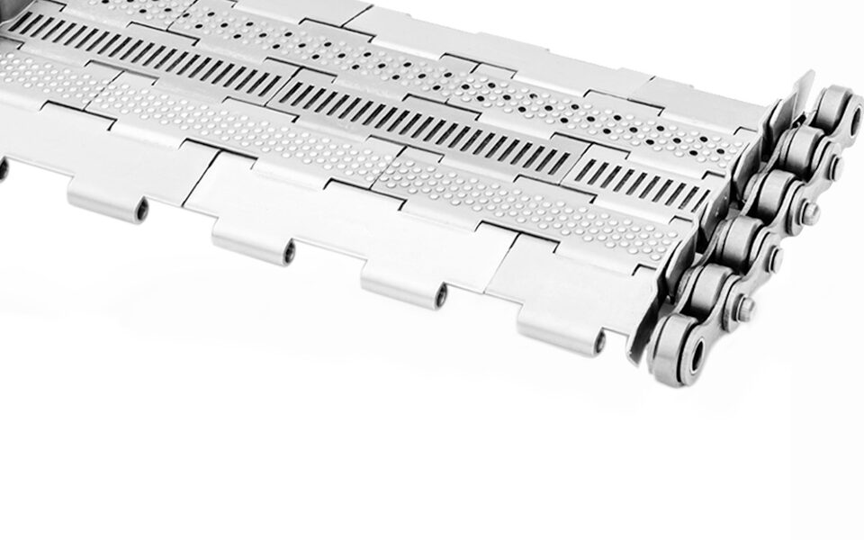 The T25.4, resistant to all types of environment, is suitable for transporting parts, bulk products, foodstuffs, liquids and chips. It can be designed in steel or stainless steel, with a smooth, hammered, notched or perforated surface, depending on the materials to be conveyed.