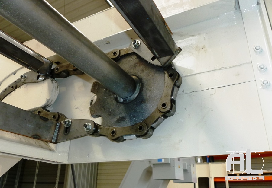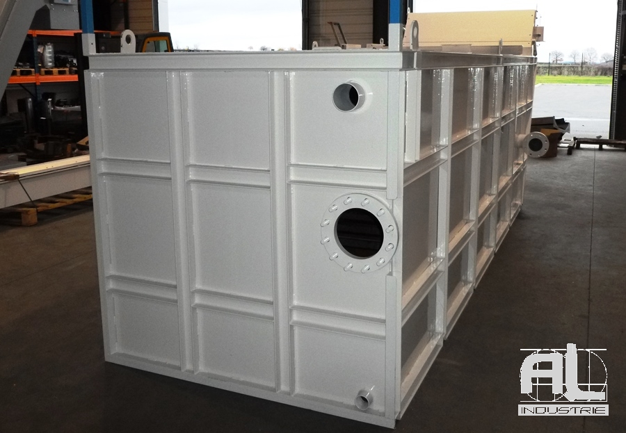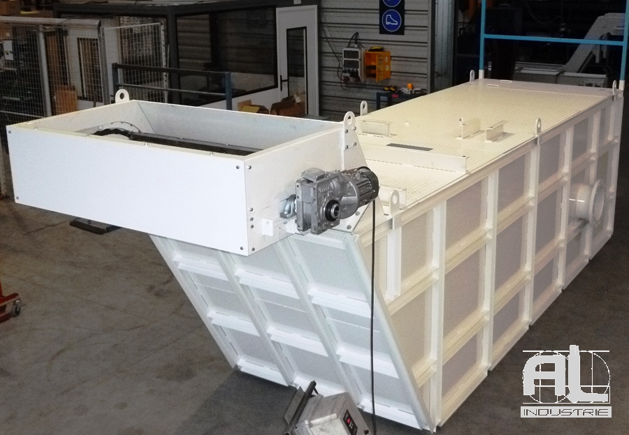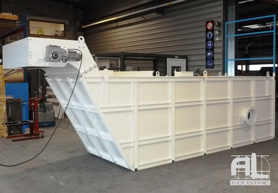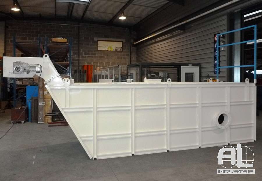 Le liquide est stocké dans le bac d’une contenance de 30 m3. Le bac est équipé d’un convoyeur à raclettes aussi appelé drague. Ce raclage inférieur remonte toutes les impuretés tombées par gravité au fond du bac. Le liquide est ainsi nettoyé et les impuretés séparées et récupérées en dehors du bac.