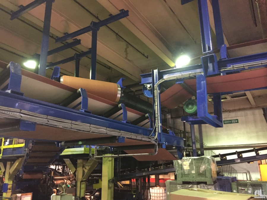 3 convoyeurs, dont 2 en sortie de machines servant à charger un 3ème alimentant une machine en fin de process.