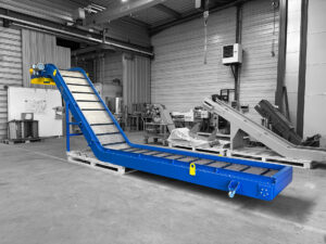 Fabricant de systèmes de tuyauterie en cuivre et laiton, le client cherchait une solution de convoyage pour récupérer les copeaux de sa machine RIELLO G1803. Avant de nous contacter, il disposait d’un convoyeur à raclettes mais cette option n’était pas la meilleure pour ses matériaux à transporter.