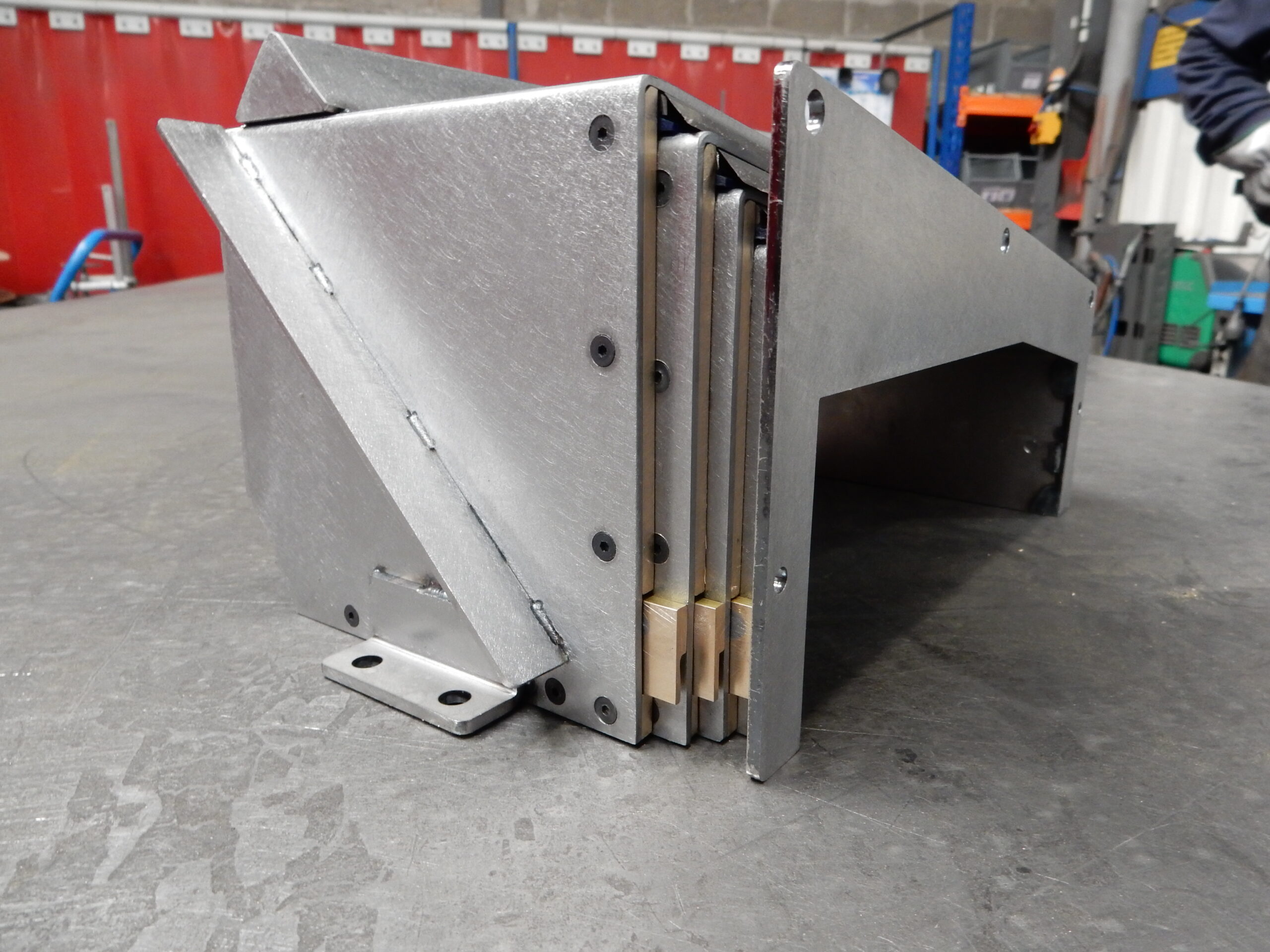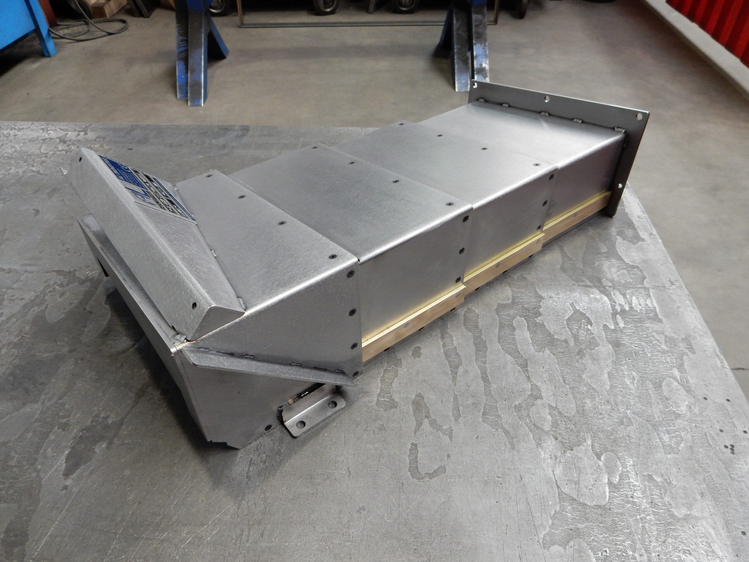 Ici, un protecteur télescopique prêt à être installé sur une machine à affûter PRAWEMA n° 469965031. Il va permettre une protection optimale de la machine de notre client, et ce malgré les différentes chutes de copeaux ou huiles tombant de la PRAWEMA.