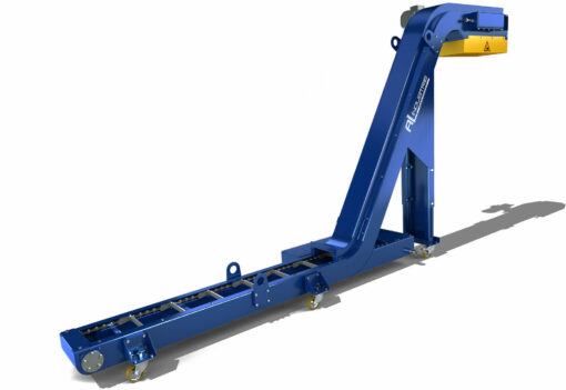 Modèle le plus utilisé dans l'industrie pour l'évacuation de petits copeaux avec fort volume de liquide. La matière à transporter tombe dans la caisse du convoyeur. Celle-ci est emmenée en partie haute par raclage. S'il y a du liquide, celui-ci est évacué dans la caisse du convoyeur et récupéré par une pompe en option. Tous nos convoyeurs peuvent être conçu avec des angles de remontés sur mesure de 0 - 30 - 45 - 60 - 70 degrés.