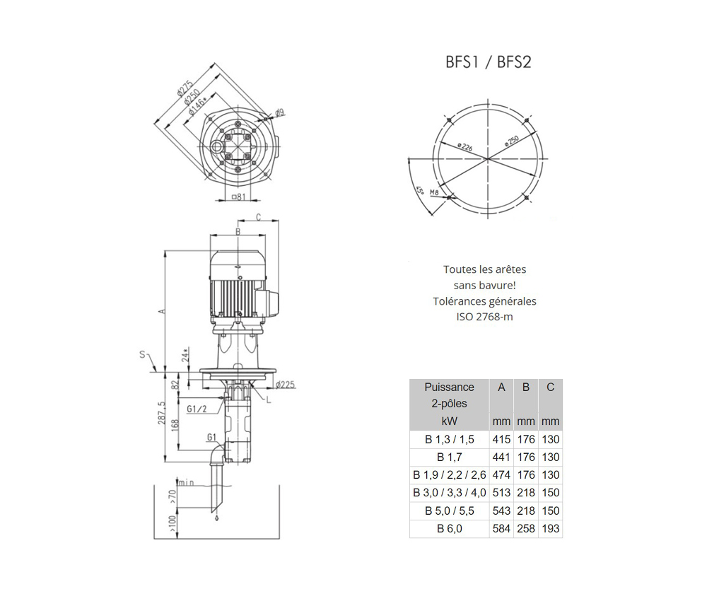 | Liquides refoulés : Emulsions de refroidissement, Huiles de coupe et de refroidissement, Huiles |