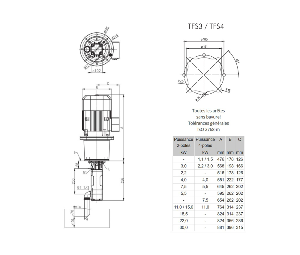 | Liquides refoulés : Emulsions de refroidissement, Huiles de coupe et de refroidissement, Huiles |
