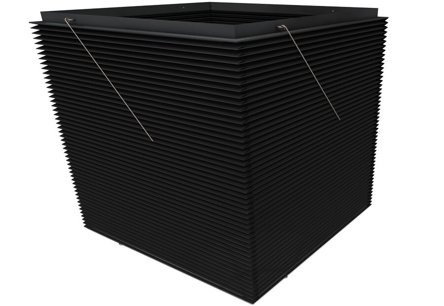 Les soufflets en toile plissée sont des soufflets de protection de glissières, rails de guidage, déplacements d'une table et isolations de faisceaux laser. On distingue trois principaux groupes de soufflets tels que le jalousie, forme U et cylindrique. Ils sont majoritairement conçus en PVC ou polyuréthane.
