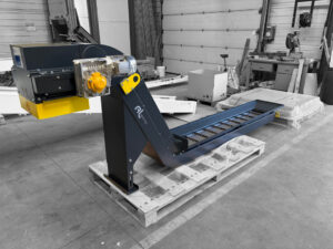 - Un déferrailleur permettant de retirer les éléments métalliques suceptibles d’être présents dans le flux de matière.
